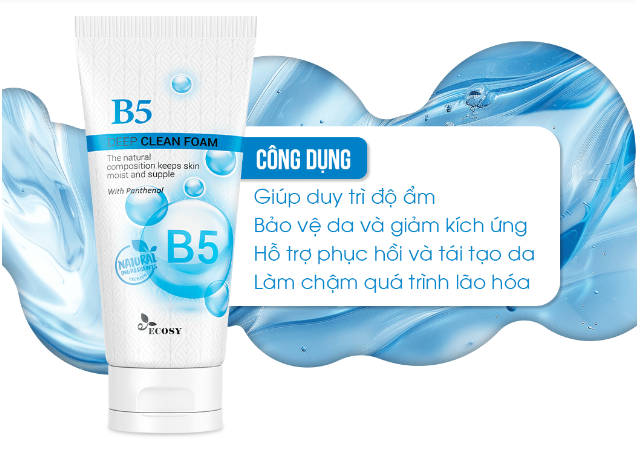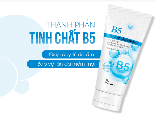 Sữa Rửa Mặt Chiết Xuất B5 - ECOSY B5 Deep Clean Foam là một sản phẩm lý tưởng cho những ai có làn da nhạy cảm, dễ kích ứng. Với công thức chứa vitamin B5 (panthenol), sản phẩm giúp làm dịu và phục hồi làn da, đồng thời làm sạch sâu lỗ chân lông, mang lại làn da mềm mịn, khỏe mạnh.