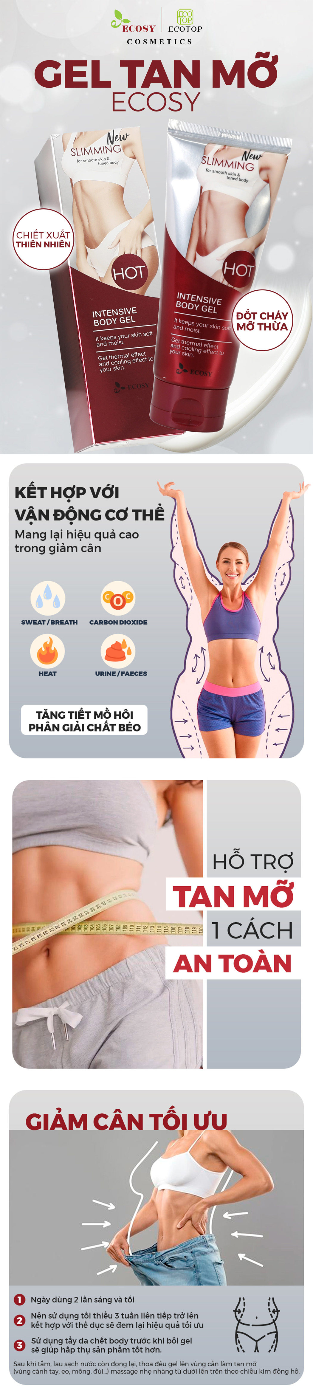 - Sau khi tắm, lau sạch nước còn đọng lại, thoa đều gel lên vùng cần làm tan mỡ (vùng cánh tay, eo, mông, đùi…) massage nhẹ nhàng từ dưới lên trên theo chiều kim đồng hồ.