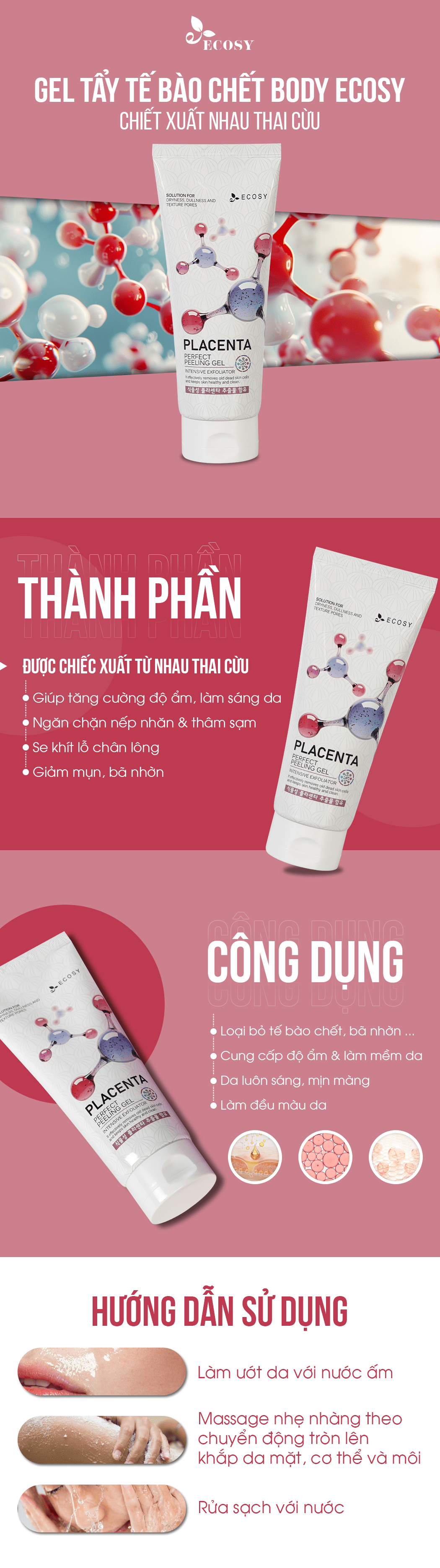 - Chiết xuất nhau thai cừu giúp tẩy da chết nhưng vẫn cung ứng đủ độ ẩm dưỡng mềm da tránh tình trạng khô ráp