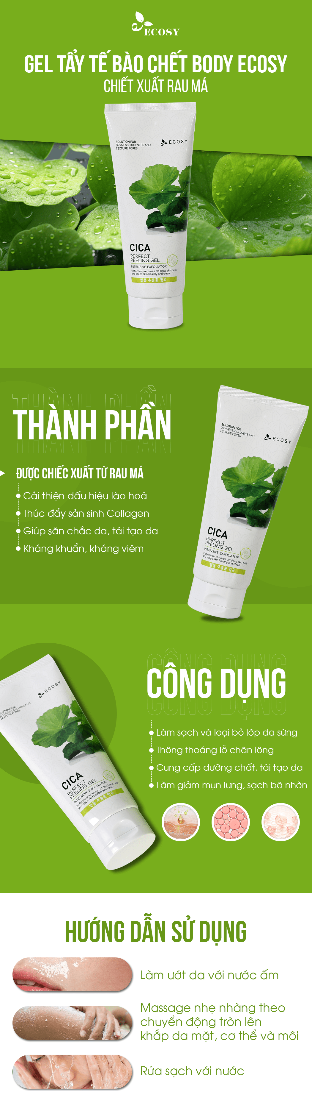 - Tẩy tế bào chết dạng gel giúp loại bỏ tế bào chết, bui bẩn,...một cách nhẹ nhàng, hạn chế ma sát làm tổn thương da.