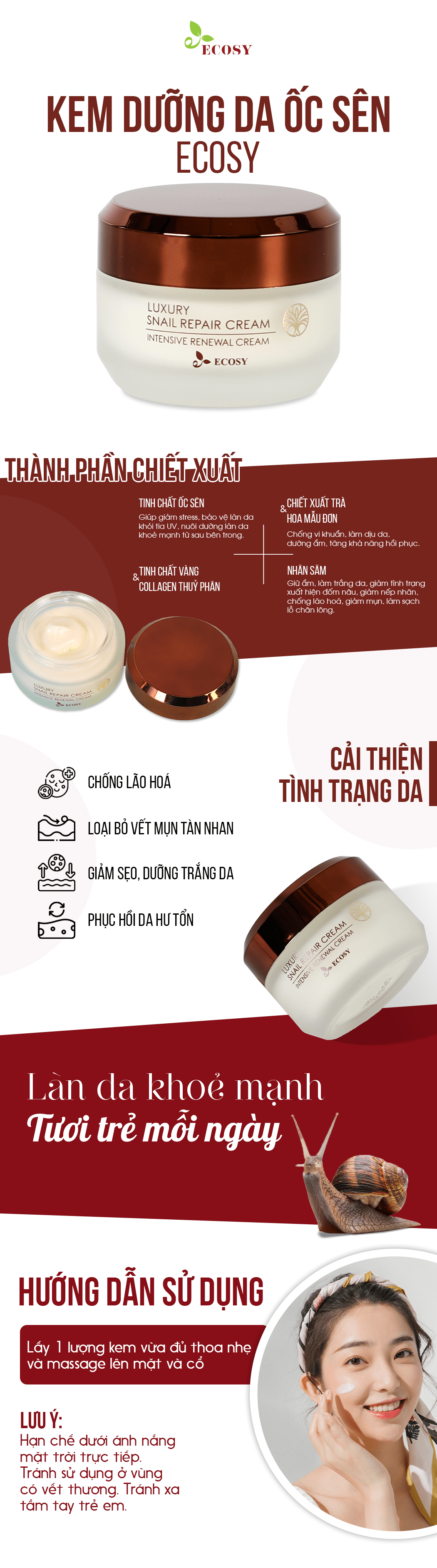- Là dòng kem cao cấp giúp với chiết xuất dịch ốc sên và nhân sâm không những mang lại cho bạn làn da trắng sáng rạng ngời mà còn phục hồi những hư tổn trên da, giúp mịn da, chống lão hóa