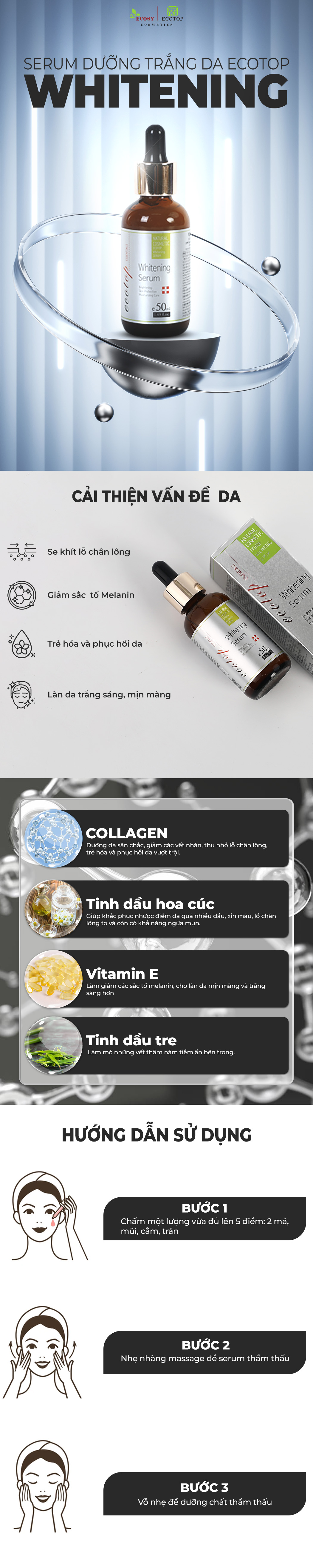 - Serum dễ dàng thấm sâu, tạo cảm giác mềm mại, không gây nhờn, cho phép sử dụng lớp kem tiếp theo giúp da trắng sáng, mịn màng, giúp làm mờ những vết thâm nám tiềm ẩn bên trong.