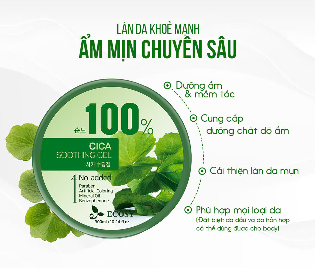 Gel Dưỡng Da Đa Năng ECOSY không chỉ đơn thuần là một sản phẩm dưỡng ẩm. Với công thức độc quyền, sản phẩm này cung cấp độ ẩm sâu cho da, giúp da mềm mại và mịn màng hơn bao giờ hết. Chiết xuất rau má tạo ra một lớp màng bảo vệ, giúp ngăn chặn những tác động tiêu cực từ môi trường như ô nhiễm và nắng gắt. Sản phẩm còn đặc biệt hiệu quả trong việc làm dịu làn da bị kích ứng, cháy nắng hoặc có dấu hiệu lão hóa.