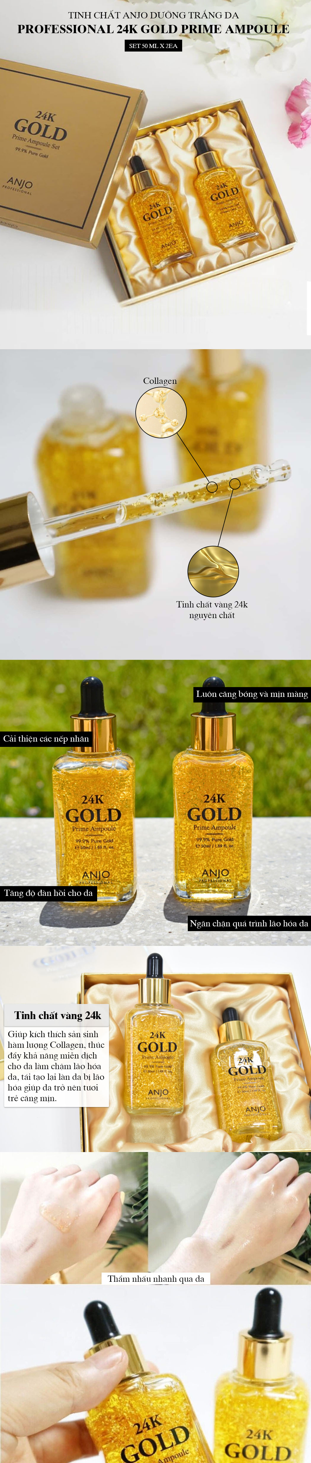 – Sau bước làm sạch da, thoa nước hoa hồng rồi lấy vài giọt Tinh chất đậm đặc 24K Gold Prime Ampoule 99.9% Pure Gold Anjo ra tay và thoa đều khắp mặt. Sau đó dùng kem dưỡng.