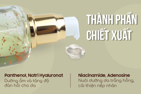 - Adenosine: Hỗ trợ chống lão hóa, làm mờ nếp nhăn và cải thiện độ đàn hồi cho da.