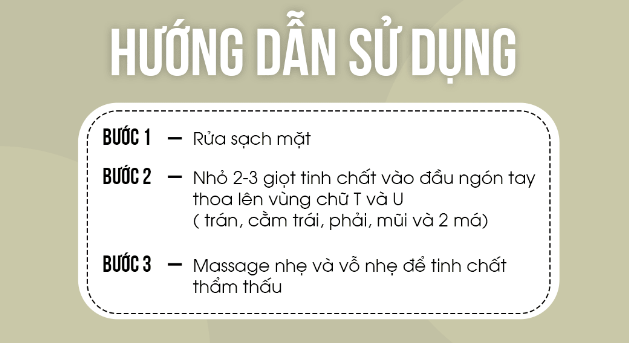 - Sau khi làm sạch da và sử dụng toner, lấy một lượng tinh chất vừa đủ thoa đều lên mặt và cổ.